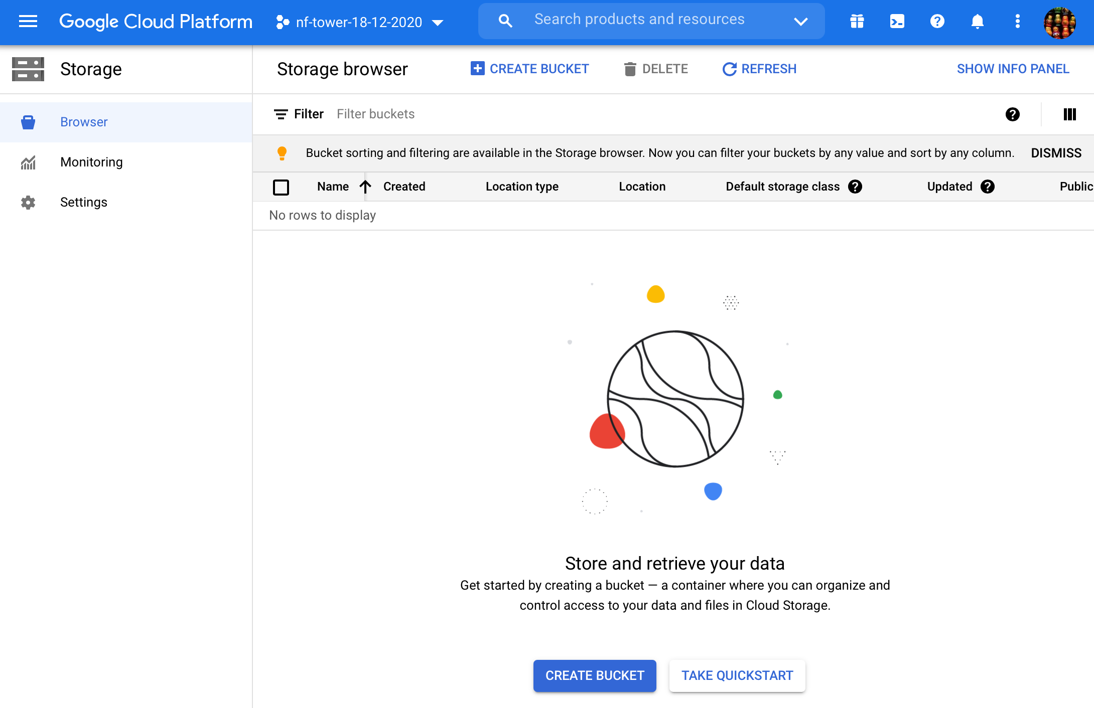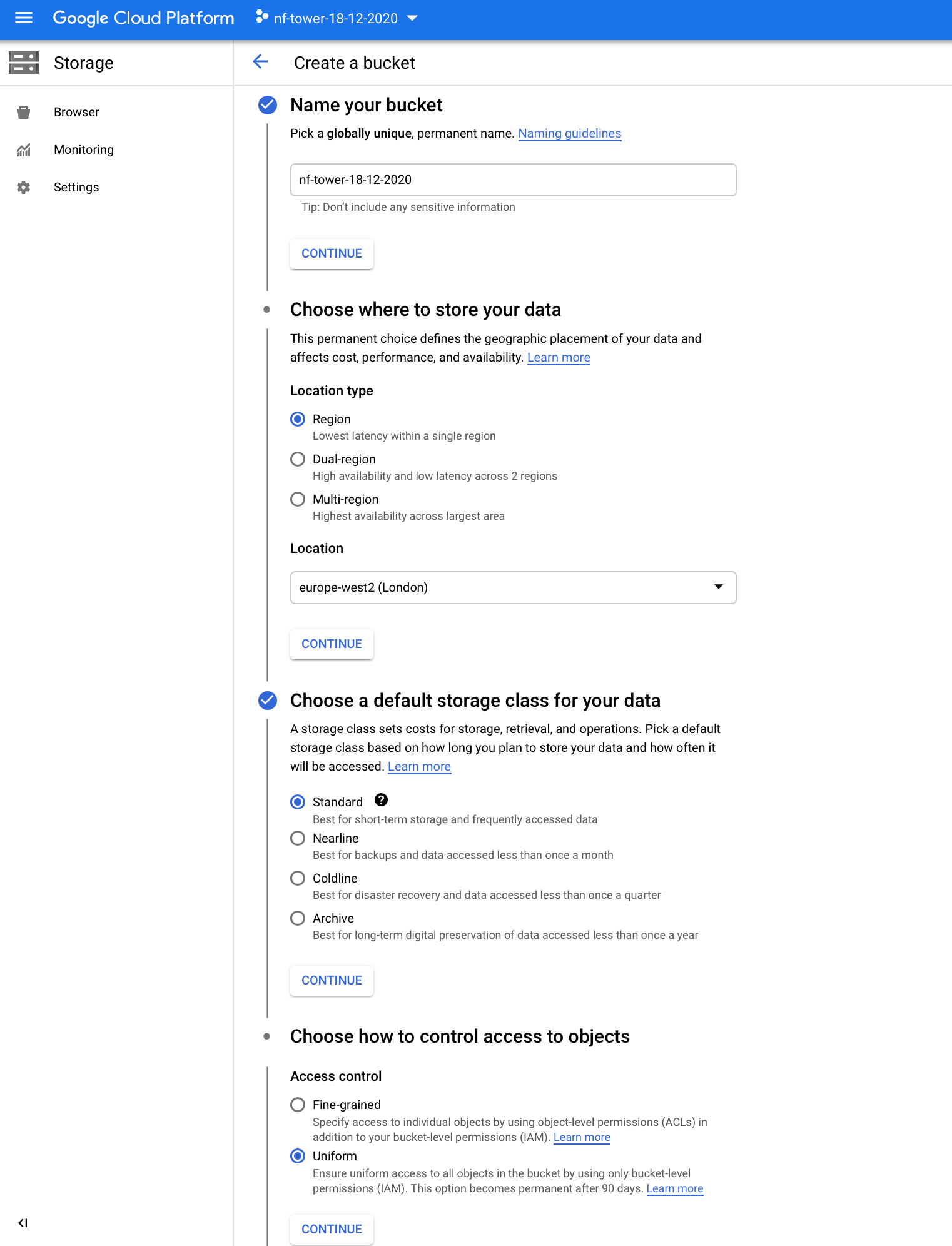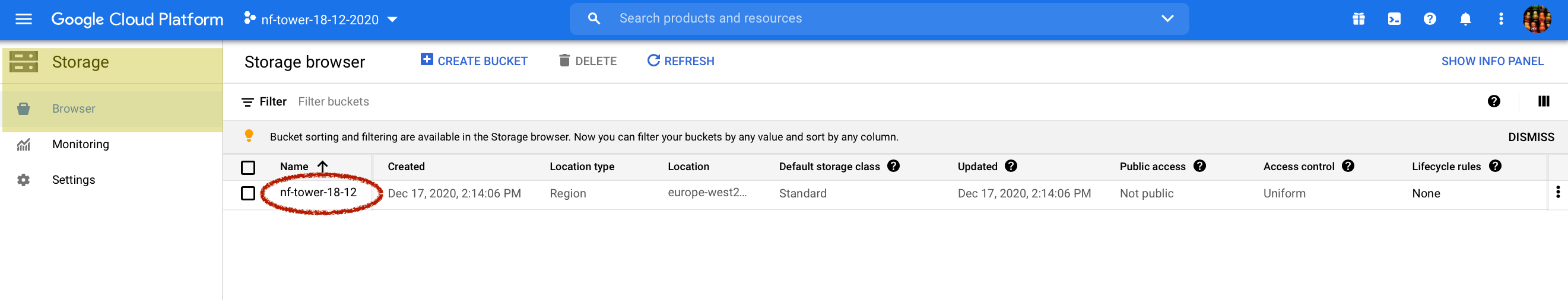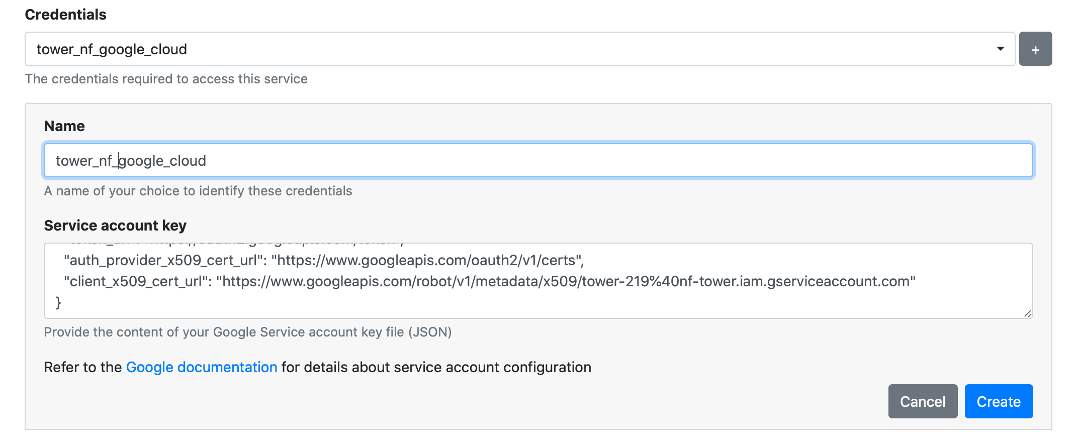 The following guide to configure Tower assumes you have JSON keys for a configured Google Cloud account. You will also need the name and location of the Google storage bucket.