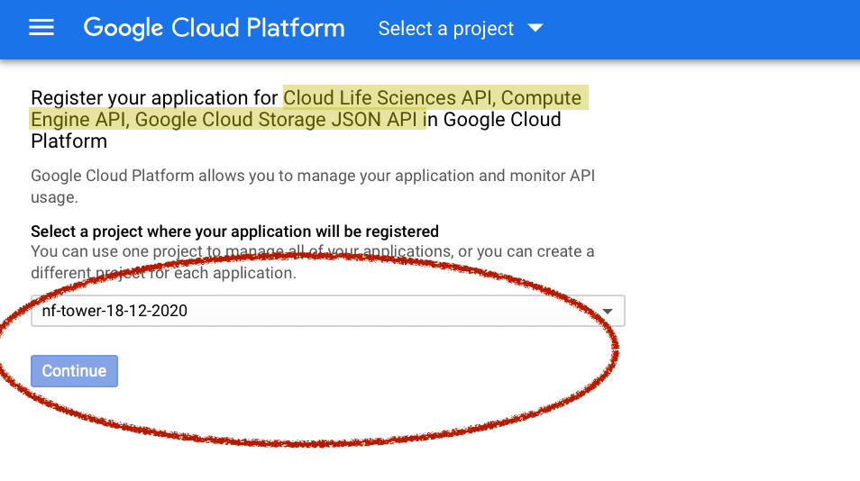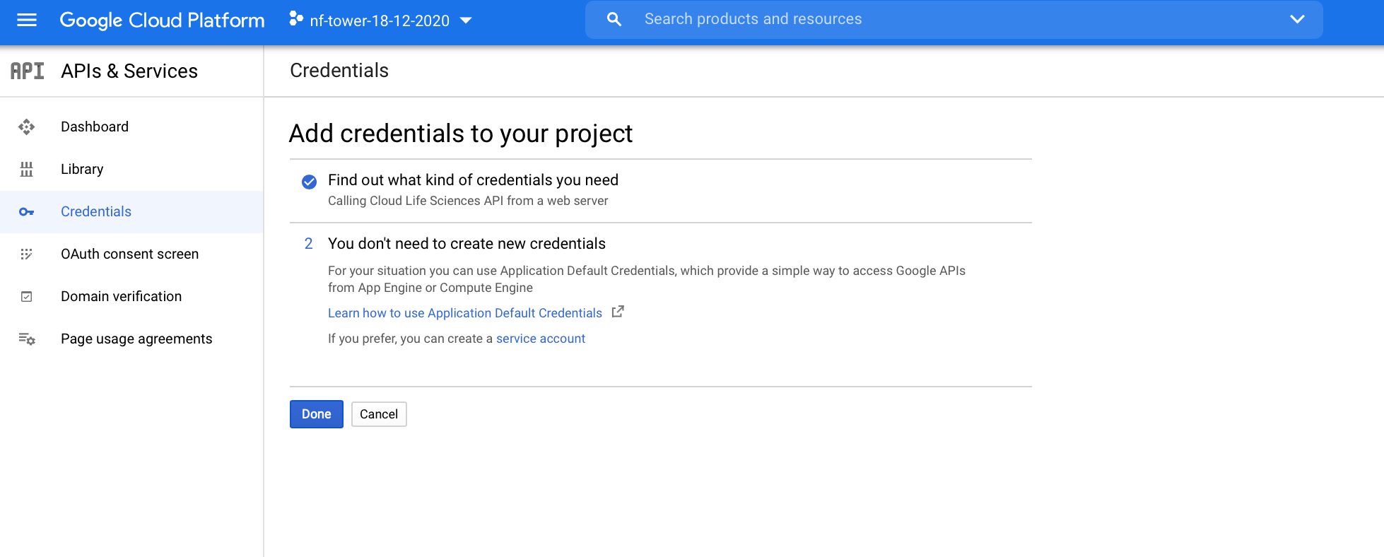 You have created a project, enabled the necessary Google APIs, created a bucket and a JSON file containing required credentials. You are now ready to set up a new compute environment in Tower.