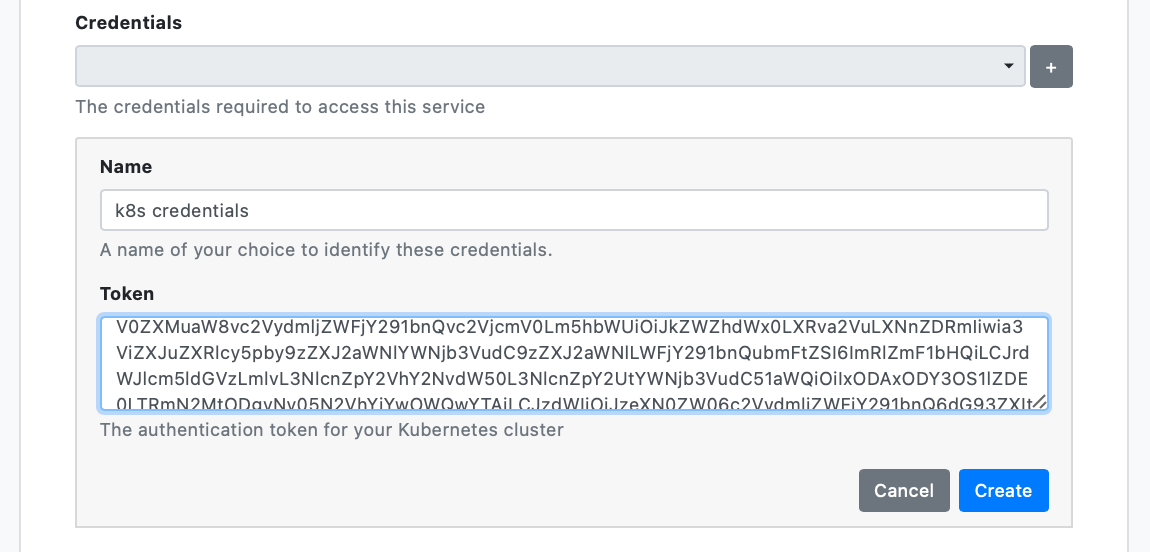 3. Select an existing Kubernetes credentials or click the + button to create a new one.