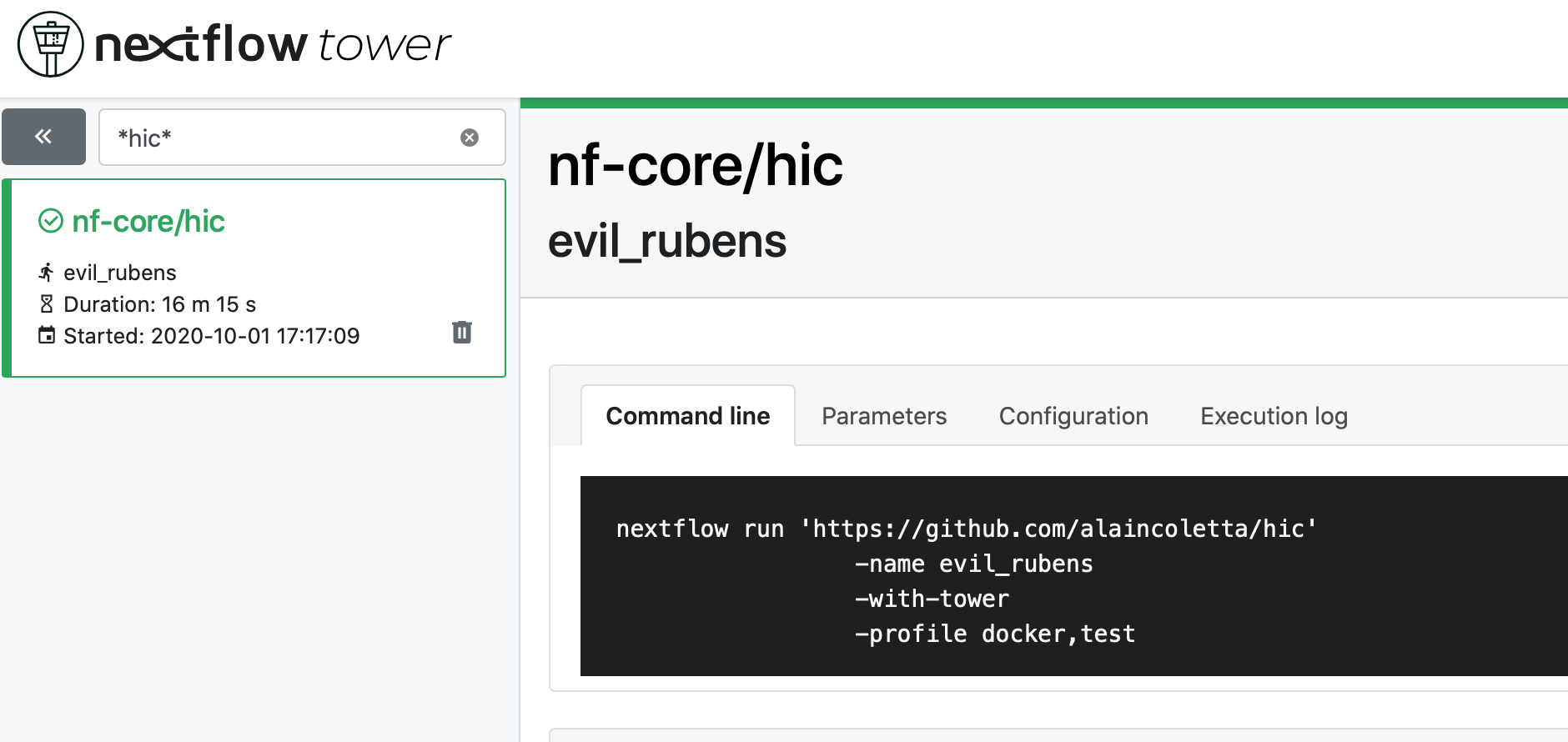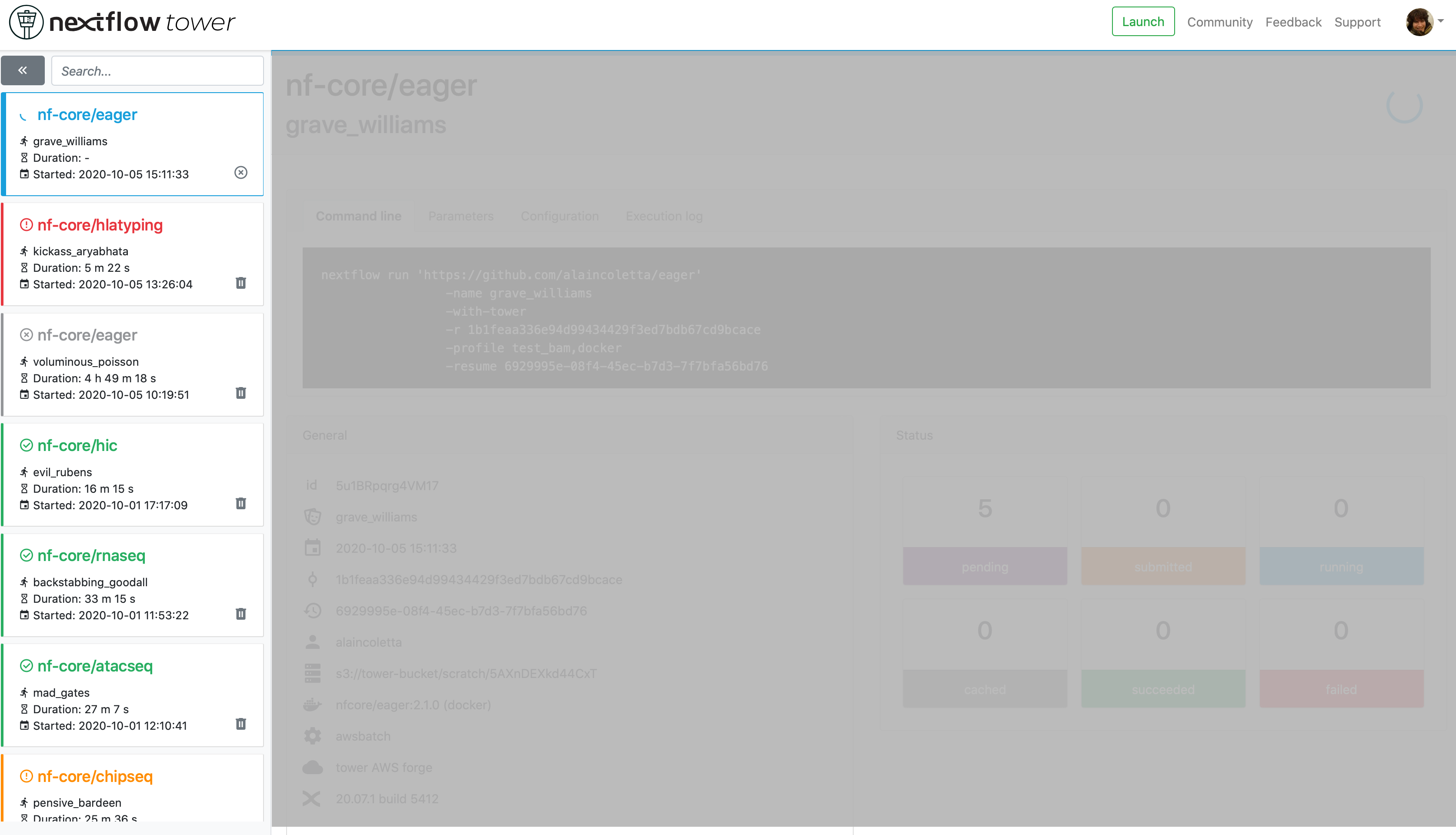 The navigation bar contains all previous jobs executions. Each new or resumed job will be given a random name e.g: grave_williams.