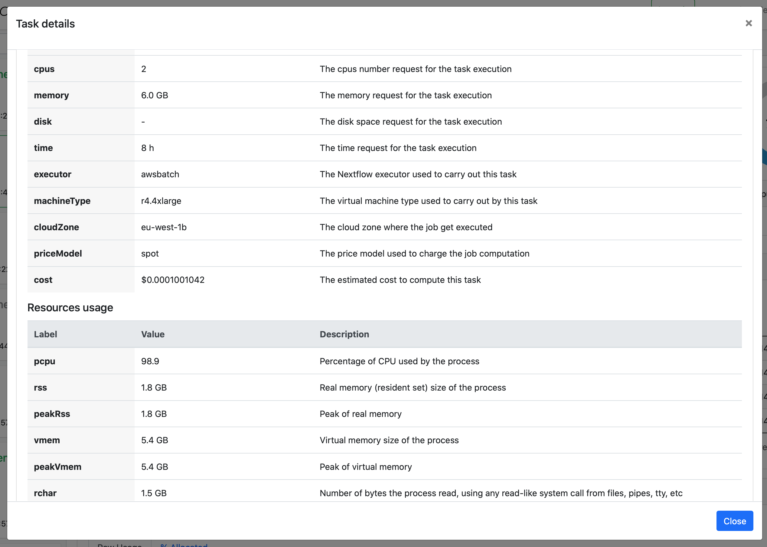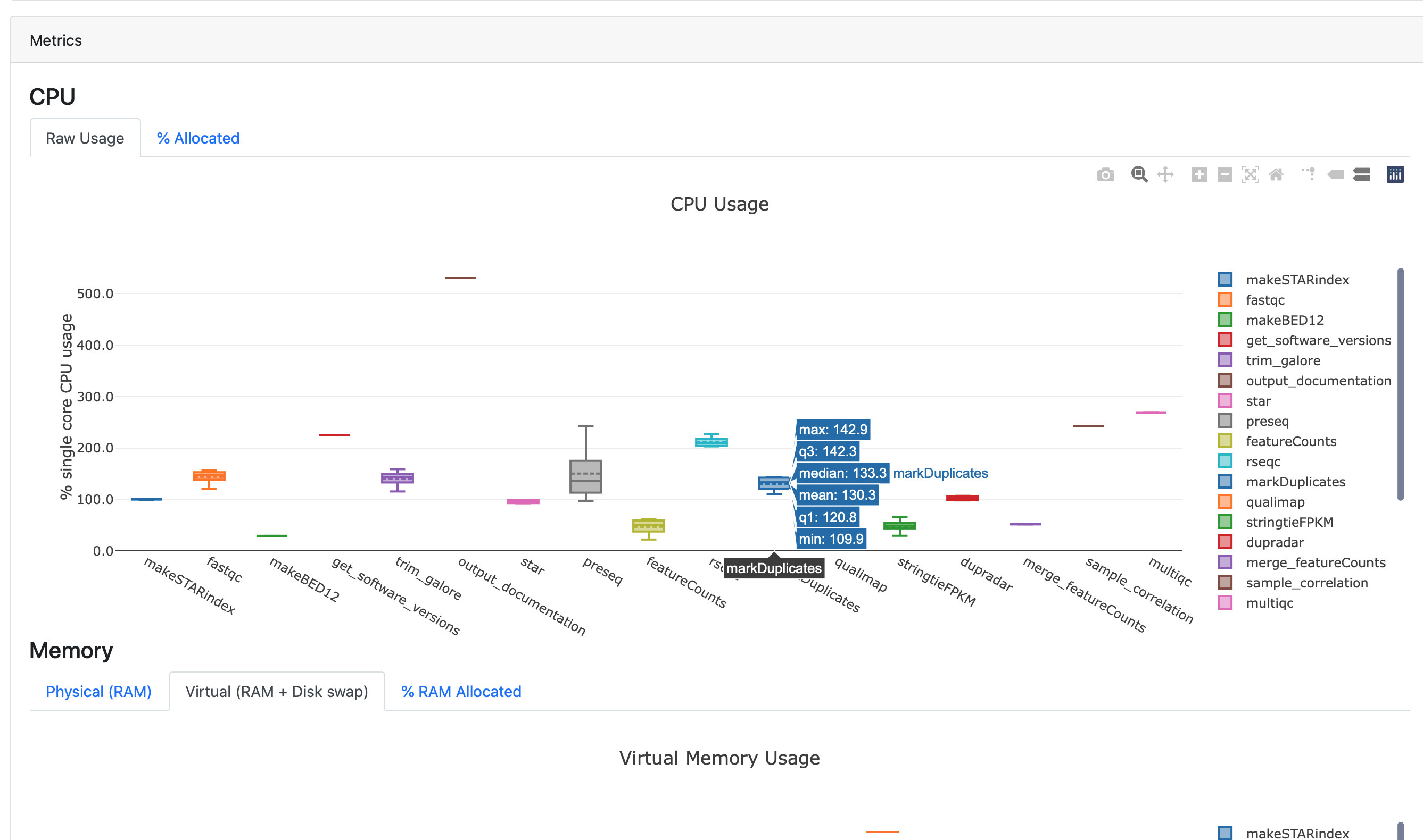 These metrics can be used to profile an execution to ensure that the correct amount or resources are being requested for each process.